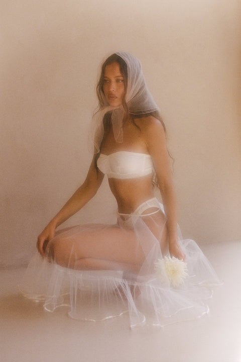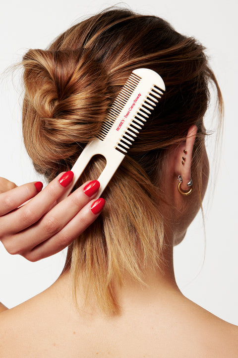 Includes a Robey Cotton Jersey Sleep Set in White with red stitching (S/M/L), a Base Camp Beauty Mulberry Silk Sleep Mask in White, and Base Camp Beauty ‘Mod Mini’ Comb in Cream.